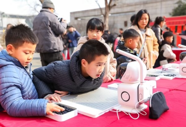 科技是本次春节活动最耀眼的“亮色”。智能机器狗身披红色“战袍”,随着新春的旋律跳起《一马当先》。它们动作整齐划一,时而作揖拜年,时而翻滚卖萌,引得围观市民笑声不断、掌声雷动。机械臂正悬腕挥毫,为市民书写着寓意吉祥的春联、旗开得胜机器人开展棋艺对决;妙笔生花机械臂为市民绘制简易素描肖像;随着机器的轻微嗡鸣,3D打印机打印出了孩子们爱不释手的新年“潮玩”。前沿科技融入年俗场景的创新,让“年味”在指尖触达了未来,为新春佳节装点上了新时代的科技氛围。